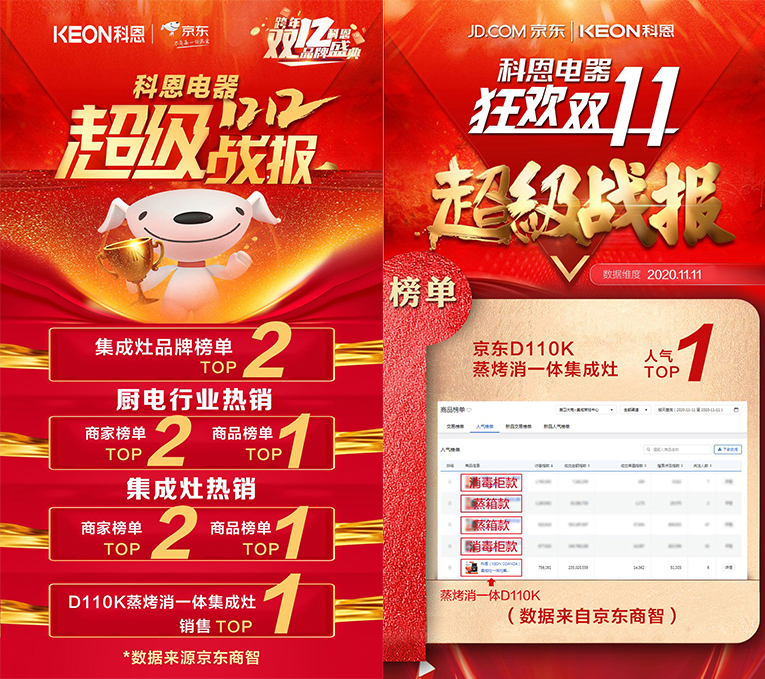 科恩集成灶從2009年誕生第一臺煙機以來,一直嚴格執行國家質量、環境管理體系標準,在材料選擇上嚴格把控,在產品質量把關上更是超越國家標準。科恩集成智慧廚房京東平臺入駐以來,多產品入倉,銷售額更是喜人,在去年雙11雙12大促中,集成灶十大品牌、廚電行業十大品牌科恩集成灶更是以優異成績呈現出良好的發展勢頭,雙十一奪獲廚衛大電新品交易榜單Top1、D110K蒸烤消集成灶單品第1、集成灶新品交易榜單Top1、集成灶新品人氣榜單Top1;雙十二奪獲廚衛大電行業熱銷商家榜單Top2、廚衛大電行業熱銷商品榜單Top1、集成灶熱銷商家榜單Top2、集成灶熱銷商品榜單Top1、集成灶品牌榜單Top2、D110K蒸烤消一體集成灶銷售Top1,憑借優異成績再攀高峰!此外,在剛剛結束的燃爆紅六月618開門紅活動中,科恩官方旗艦店京東直播在線人數再創新高,開門紅單場銷售額超百萬,超預期的銷售佳績讓科恩成為京東直播的一匹黑馬。