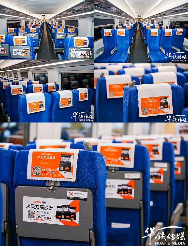 搭載中國速度,實現品牌騰飛。科恩電器斥資800萬冠名高鐵,其品牌專列在湖南長沙完成首發后,橫跨17個省/直轄市,日運行91車次,全年飛馳于全國各地,科恩品牌之聲響徹大江南北。從高鐵車外機身,到車內桌貼、天幕,有序陳列醒目的科恩橙色標識,全覆蓋式的冠名方式,讓消費者更能近距離的全方位感受科恩品牌魅力。