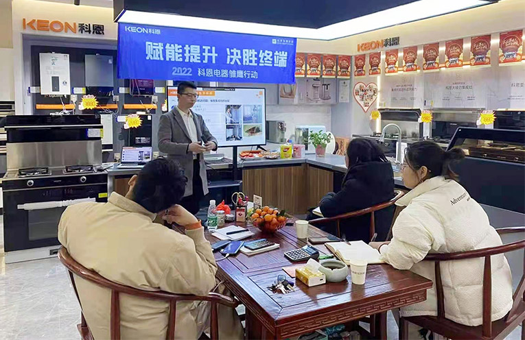 為了能更好地服務于客戶,2022年科恩集成灶雛鷹行動正式開展,雛鷹行動旨在深入一線賦能門店,以成熟的體系化方法論和實踐操作相結合的模式,手把手幫扶科恩全國門店,與終端進行零距離接觸,為經(jīng)銷商進行專業(yè)的導購、銷售、活動、實操技能指導,全面助力提升科恩集成灶在當?shù)氐氖袌龈偁幜Γ?
