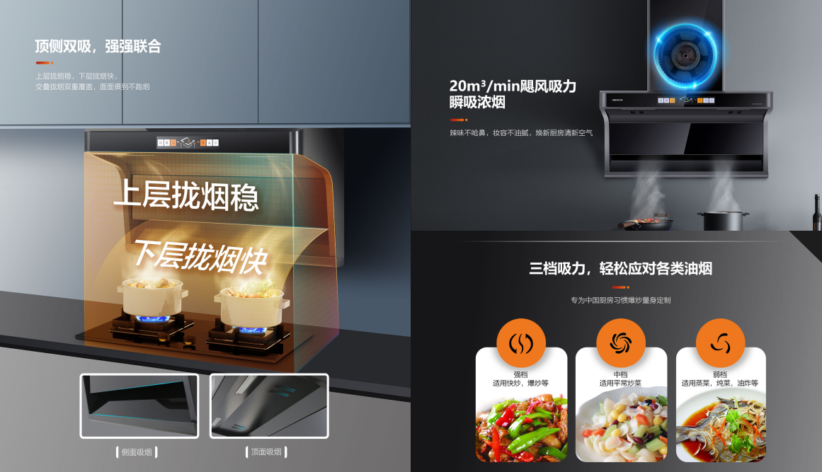 頂側雙吸、外觀出眾、性能一流!一款優秀的煙機,不僅能夠輕松解決廚房油煙問題,更能把生活里的詩和遠方裝點進沉悶廚房,揉入三餐四季,烹出心生歡喜!