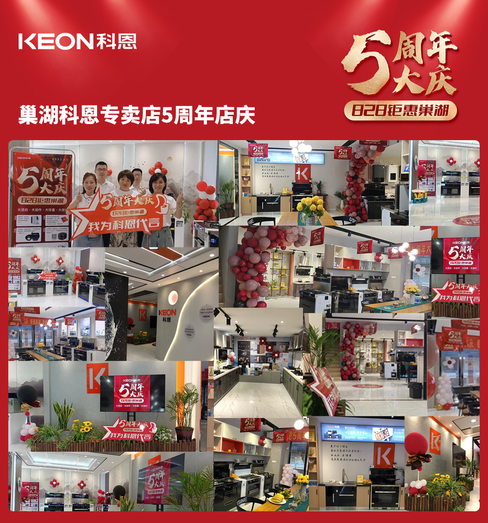 火紅八月 鉅惠全城,科恩桑植盛大開業(yè)、科恩巢湖五周年慶、科恩達(dá)州十周年慶將于8月28日盛大啟幕,大活動·大動作·大驚喜·大放價,報名禮、官宣禮、金蛋禮,豐厚福利已準(zhǔn)備就緒,入場有禮、美食大獎、超多爆款集成灶工廠價搶購,更有高端速熱可移動凈水器無條件免費試用!