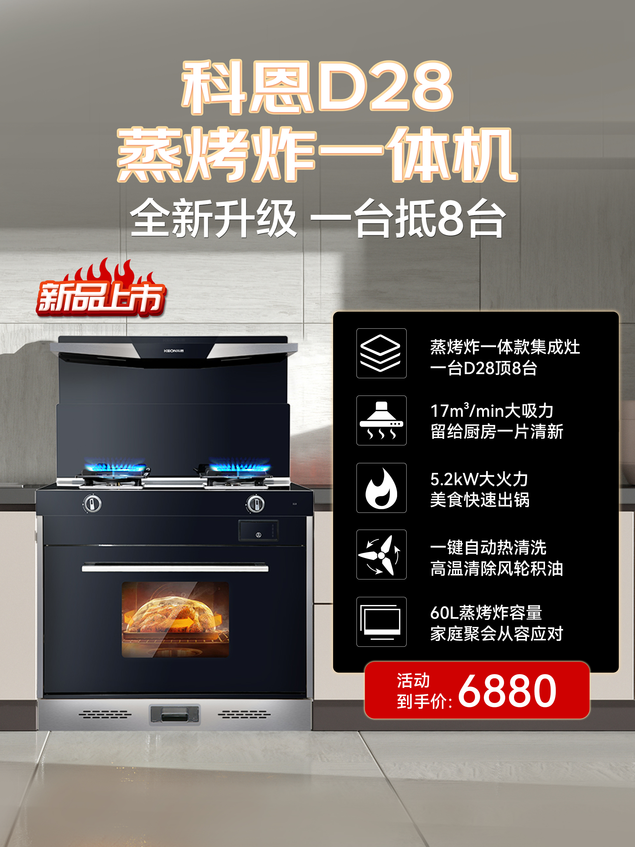 D28蒸烤炸集成灶超級秒殺:下單即贈(zèng)康巴赫套鍋;咨詢客服送無菌菜板!