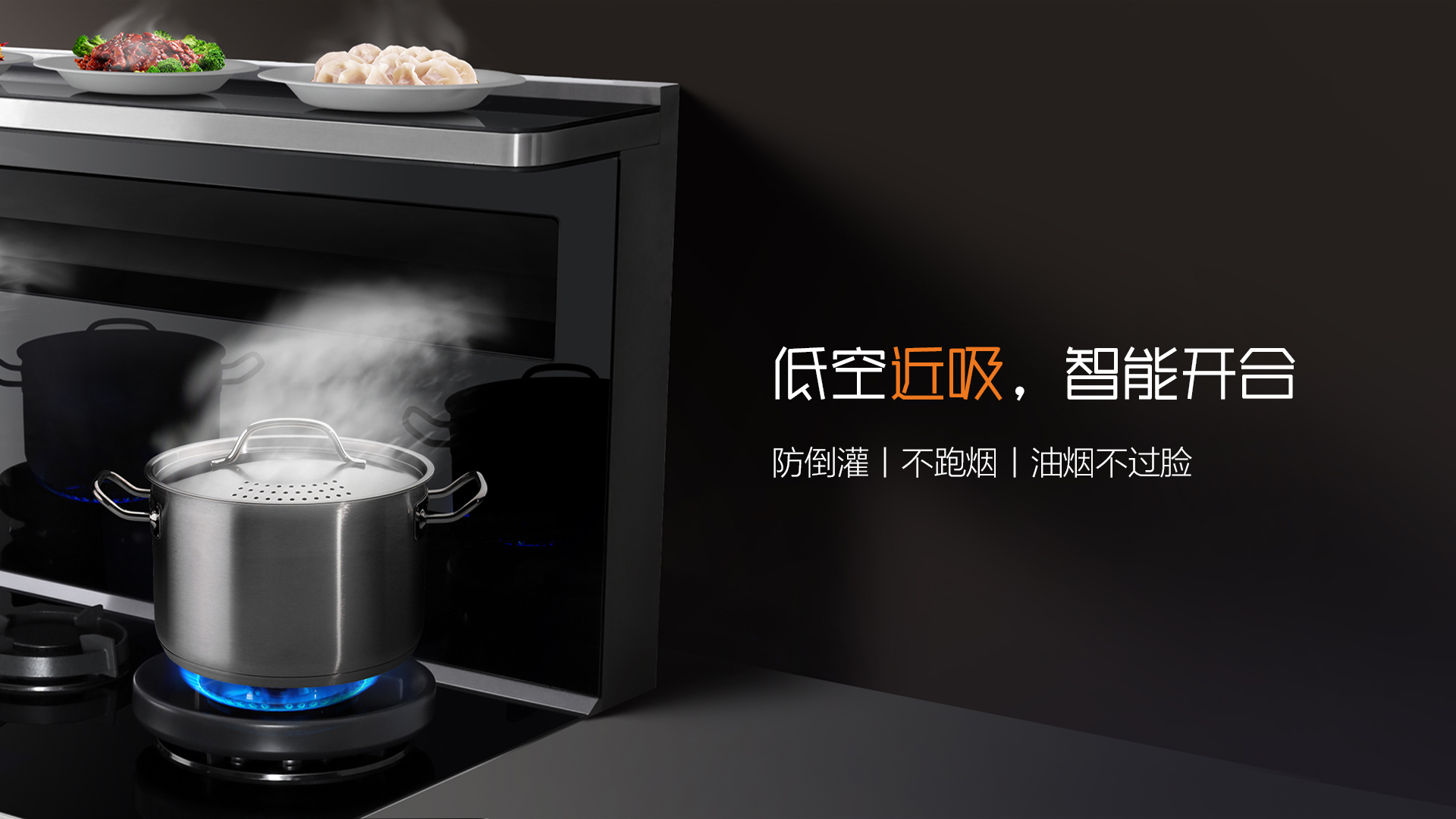 特有的內(nèi)傾科恩達(dá)導(dǎo)煙網(wǎng)板不遮擋視線(xiàn),且形成獨(dú)特的吸煙黃金角,讓油煙在鍋口就被吸走,0跑煙,廚房更清新!