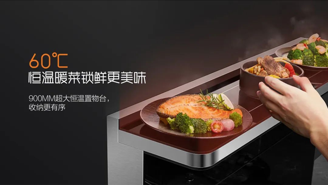 A3系列除了實現快速烹飪之外,更在細節上充分展示了人性化設計。自帶保溫功能的恒溫置物臺,除了能解決廚房收納問題外,更避免了菜肴二次加熱煩惱。