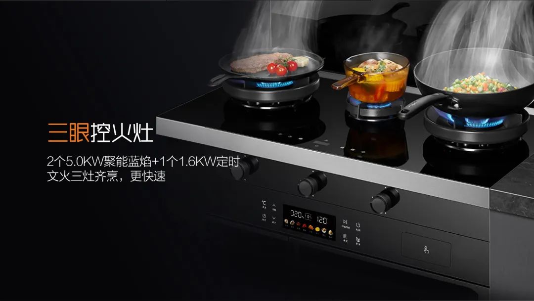 科恩A3系列集成灶,創新之處除了蒸烤炸燉四位一體意外,還有三灶同烹的新興黑科技!