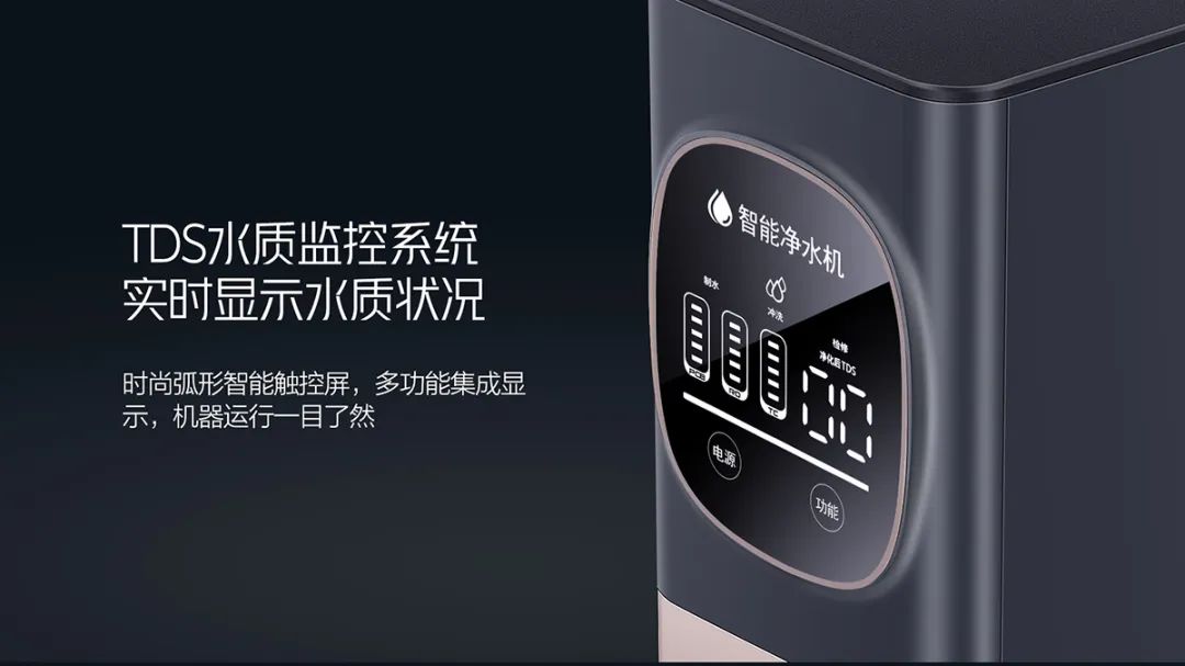 TDS水質監控系統,實時顯示水質狀況,安全飲水有保障,不用擔心自己忘記查看水質的,或者忘記查看濾芯壽命,安全飲水有保障。