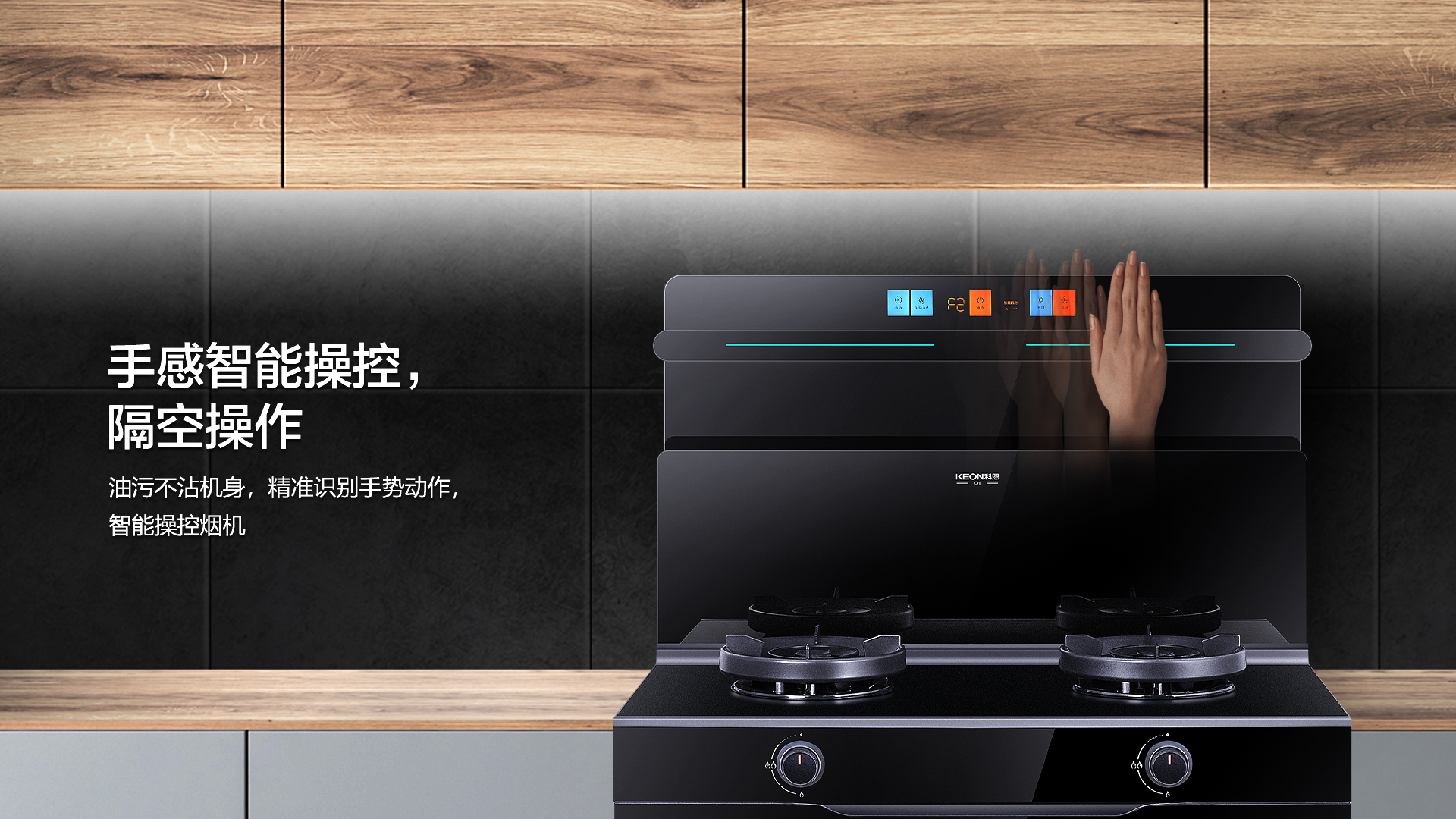 同時,還貼心設置體感功能,揮手即可操控集成灶,避免了面板都是手指油污的尷尬。