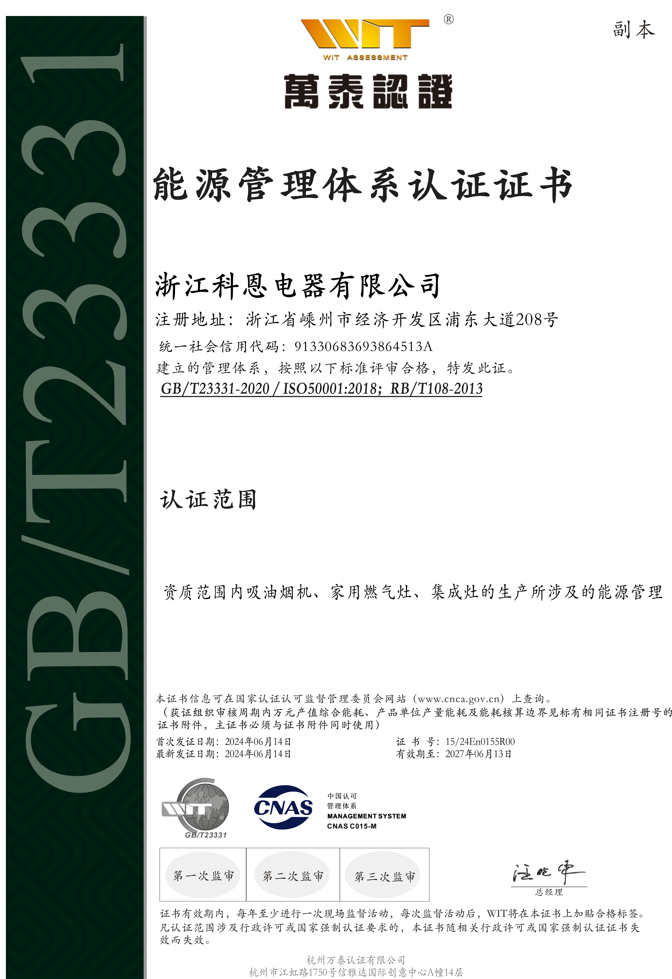 助力綠色發(fā)展,科恩公司獲得“ISO50001能源管理體系認(rèn)證”!
