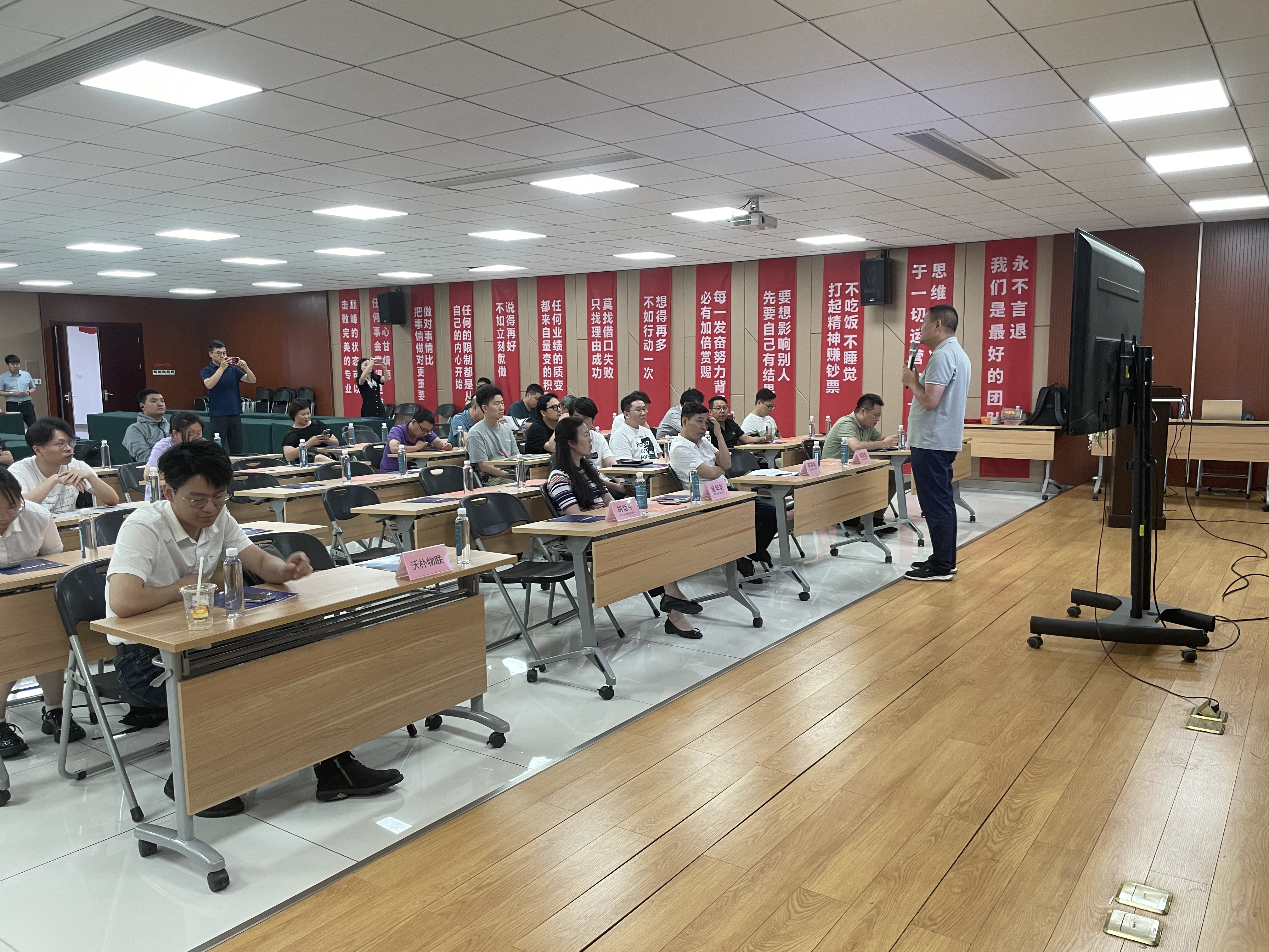 本次會議邀請到了:嵊州市數(shù)字經(jīng)濟促進會副會長--黃曉輝、企業(yè)數(shù)字化升級研究專家--黃涌忠、釘釘紹興區(qū)域負責人--胡哲平、科恩電器總經(jīng)理--陳益軍、銳智企業(yè)數(shù)字化方案實施專家--傅宏翔做重要分享。