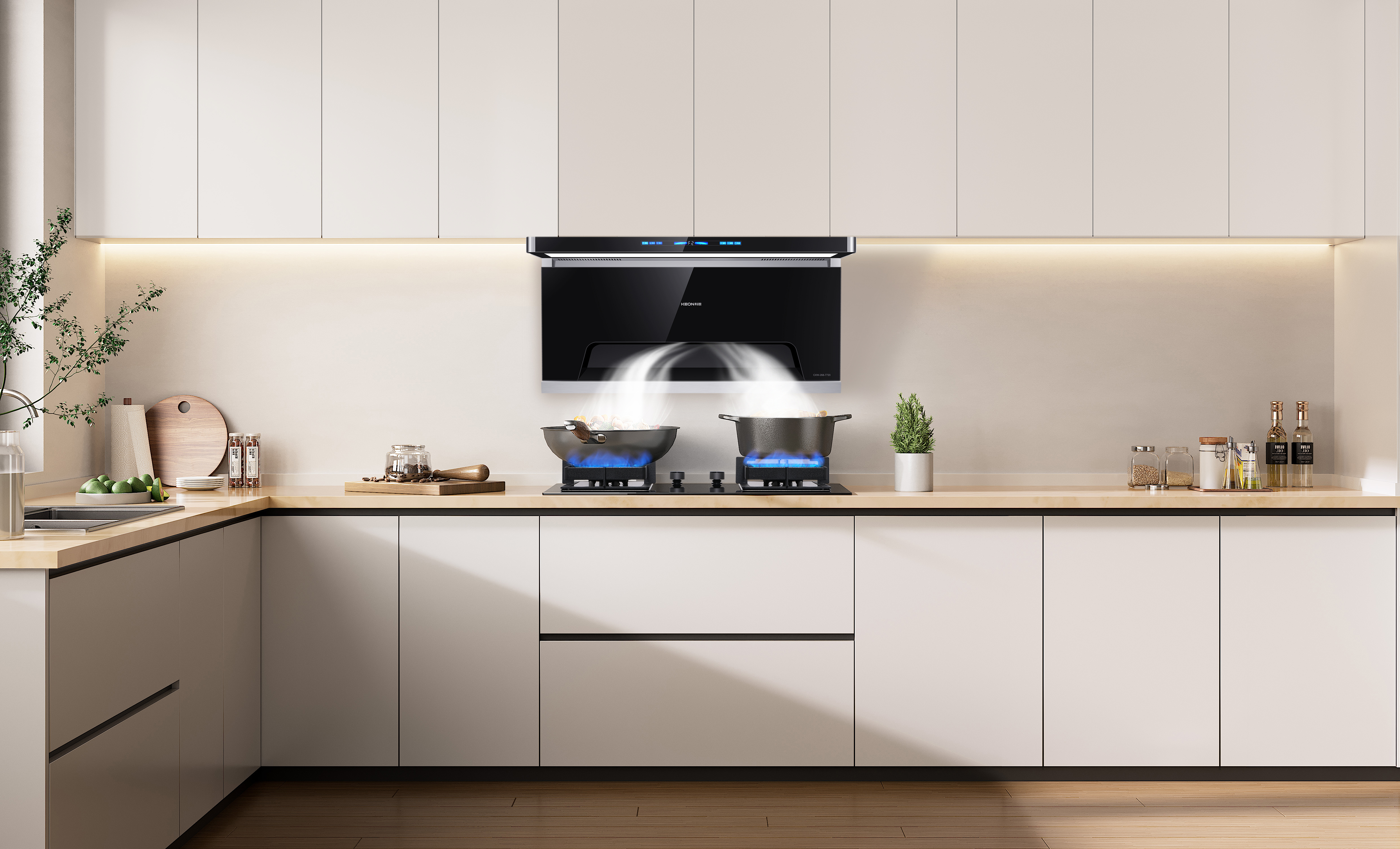 在性能上,科恩7720煙機更是毫不遜色。一鍵即可開啟23.5m³的爆炒大吸力,面對重油爆炒的菜肴也能從容應對,將油煙迅速吸凈,還廚房一片清新。體感智控功能更是科技感滿滿,揮手之間,油煙便消失得無影無蹤,徹底杜絕了油膩沾染煙機的煩惱。風隨火啟的煙灶聯動設計,展現出智慧從容的一面,通過智聯吸排科技,讓烹飪過程更加流暢。4+1檔風力調節,無論是小火慢燉還是大火爆炒,都能輕松找到合適的風力,滿足各種烹飪需求。1000Pa的大風壓,有效告別油煙倒灌的煩惱,確保廚房空氣始終清新。