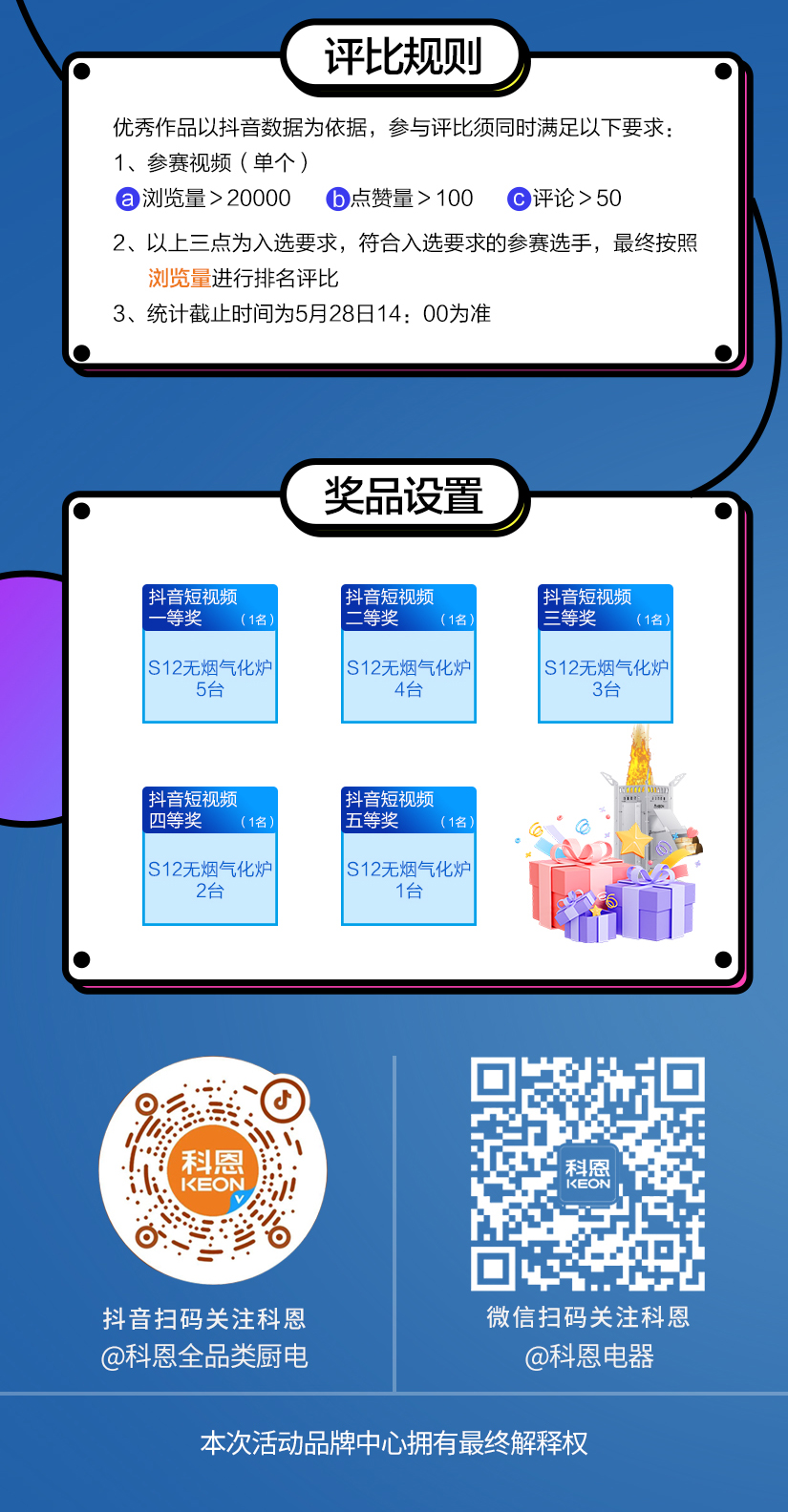 江湖風(fēng)云起,爐火論英雄。快收藏這份規(guī)則秘籍。福利升級,獎品豐厚,煥新好禮帶回家。廚房江湖,等你來戰(zhàn)。@科恩全品類廚電官方抖音號,帶上話題 #科恩龍蝦節(jié)#科恩無煙氣化爐,定位打卡地點,即刻點燃爐火,舉起鏡頭,用一場色香味俱全的短視頻盛宴。搶占今夏流量C位!