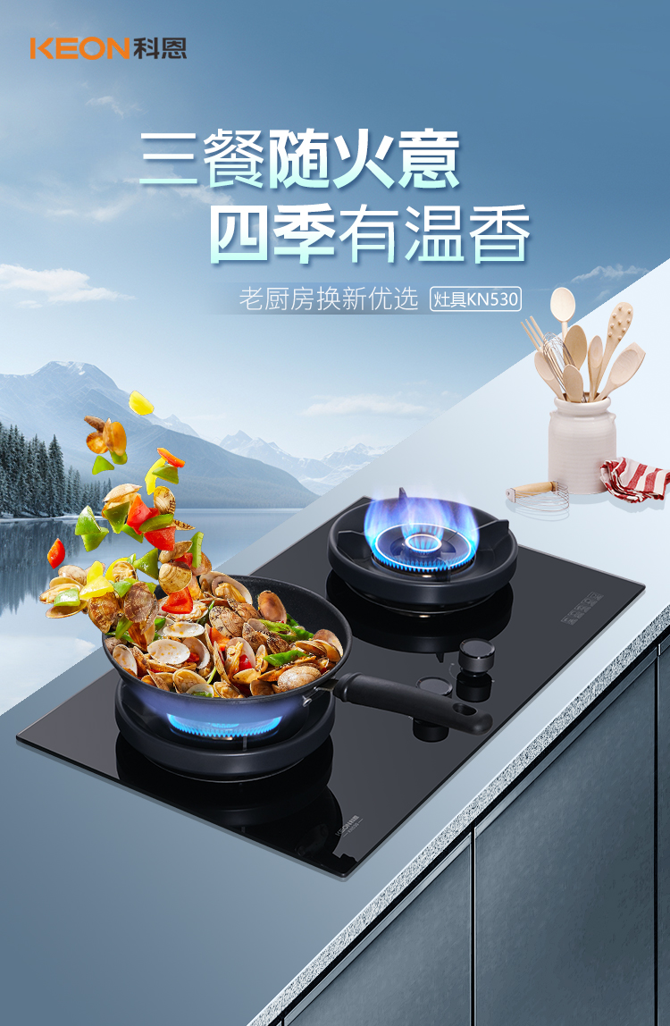 三餐煙火暖,灶間藏日常。老舊灶具總在烹飪時添堵,火候忽大忽小,炒不出脆嫩鍋氣,油污難擦,旋鈕發(fā)燙,科恩全新推出 KN530 灶具。以匠心設計破解廚房痛點,從老舊灶臺到全新烹飪空間,只需一次換裝,開啟美味新紀元。