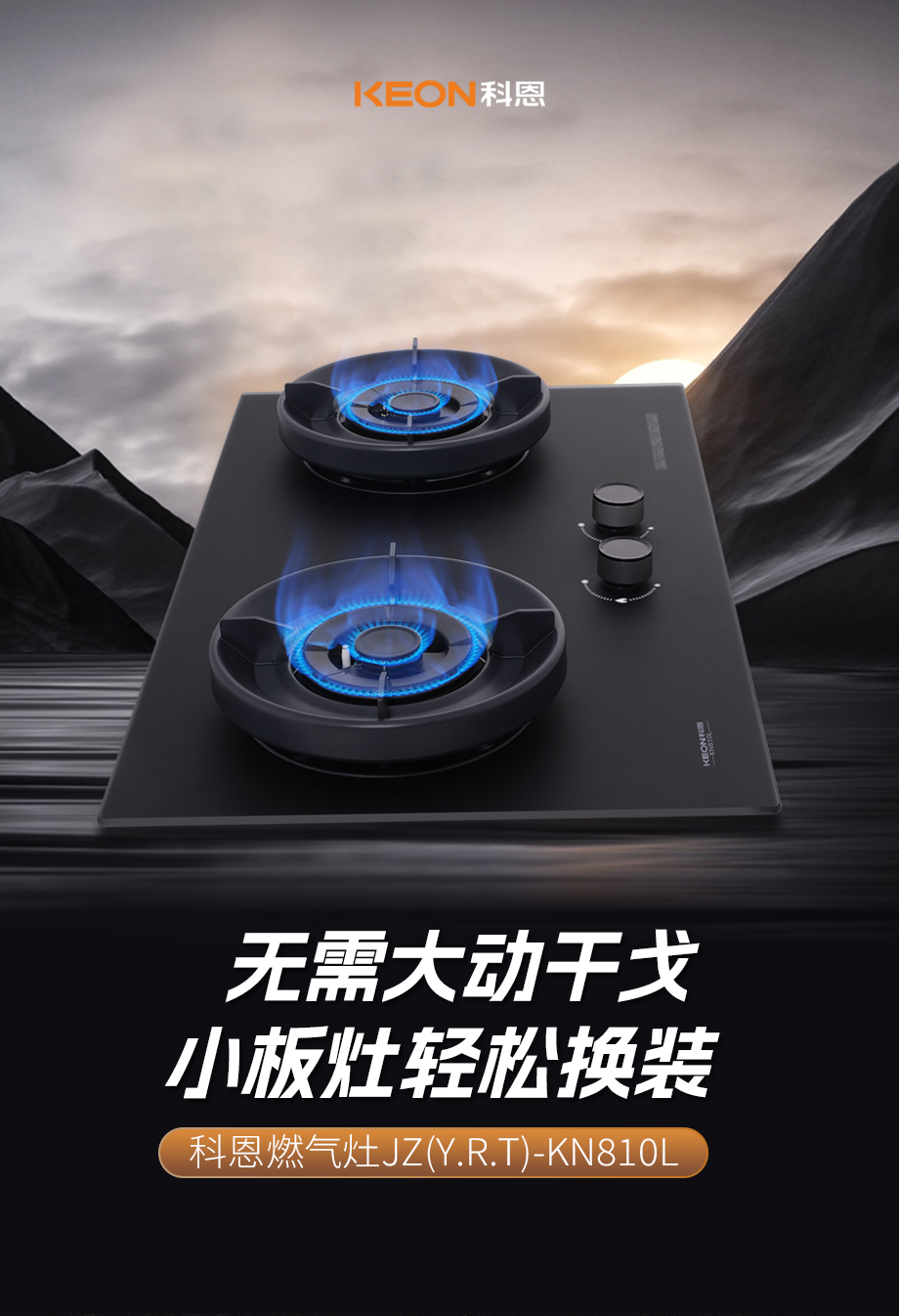 小巧換裝,火力強勁舊灶換裝怕麻煩,拆改費時又費錢科恩KN810L小板灶,無需改動輕松換5.2KW大火力,爆炒鮮香瞬間出環抱式聚能環,防風聚熱更高效68%一級熱效率,節能省氣降成本0-170°寬域調火,慢燉爆炒皆適配。耐用防污,安全護航灶臺油污難清理,爐頭易銹壽命短亞膜水霧鋼化玻璃,油砂納米不沾油航空級合金爐頭,抗腐防銹耐高溫全銅小火蓋設計,經久耐用更省心黑色鏡面防滑旋鈕,防燙隔熱更安全意外熄火斷氣源,守護廚房每一刻