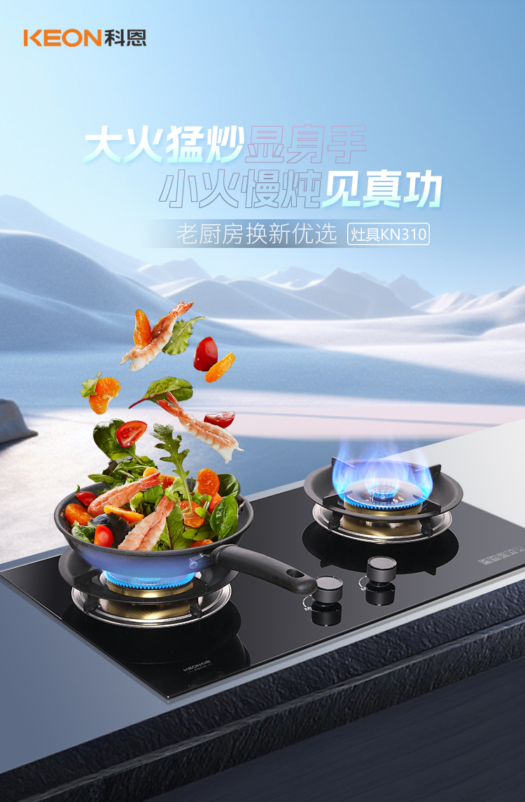 新國(guó)標(biāo)落地,能效門檻再提升。老舊灶具費(fèi)氣低效,爆炒力不從心,科恩KN310新一級(jí)能效灶具重磅登場(chǎng)。以全能實(shí)力適配多樣廚房,讓烹飪重拾酣暢與安心。