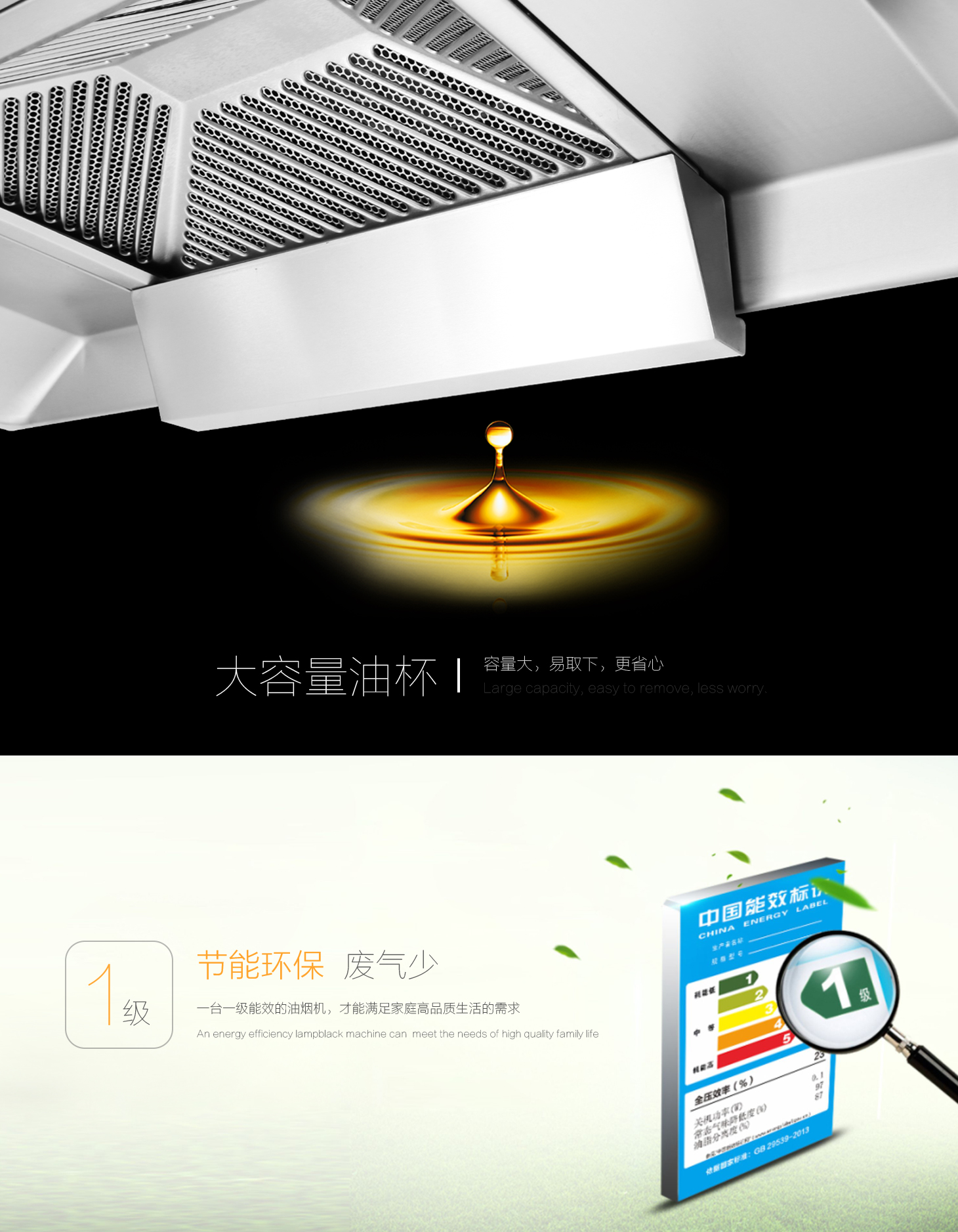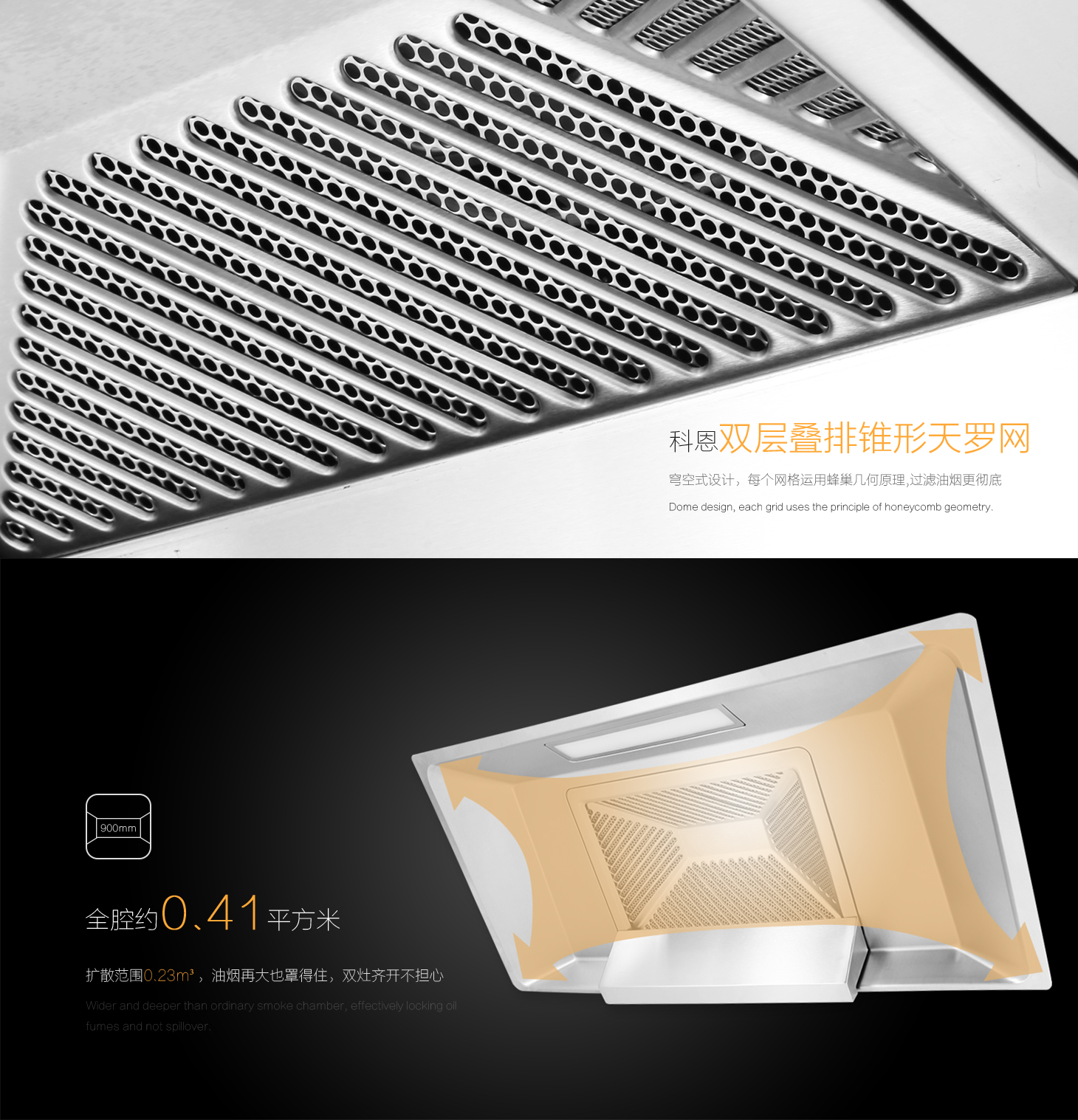 • 蜂窩狀濾油網,迅速導油并徹底分離油煙。