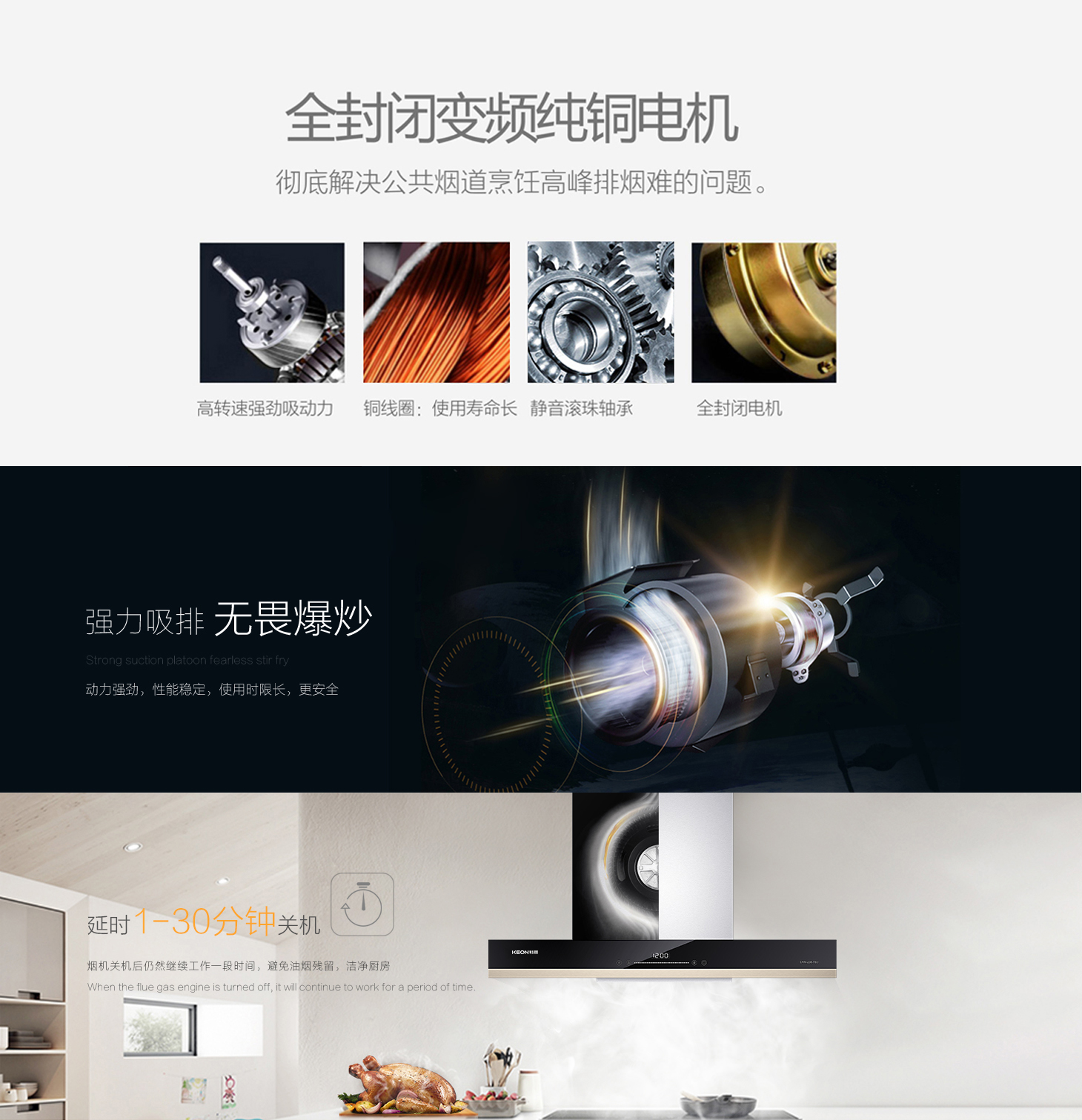 • 三防封閉式純銅電機,使用壽命長,更讓廚房遠離嘈雜。