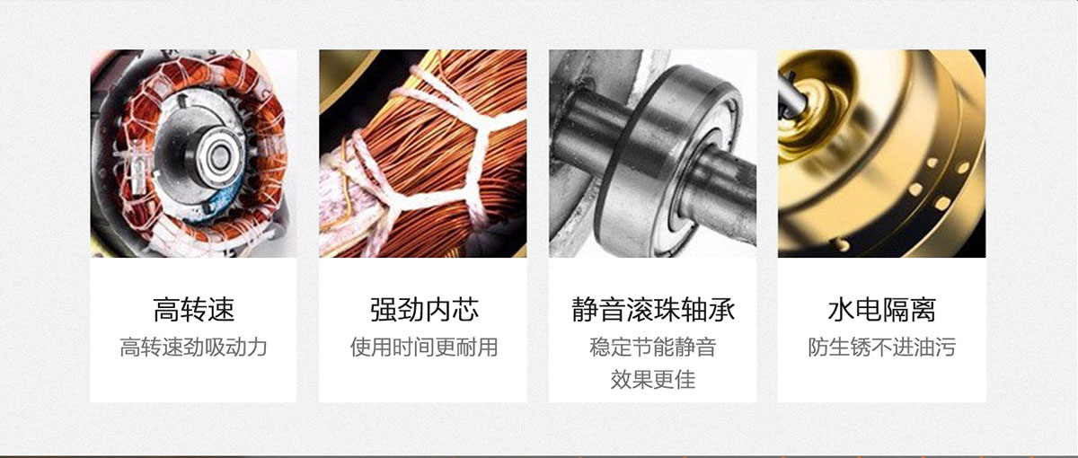 - 全封閉雙滾珠靜音電機(jī),高速運(yùn)轉(zhuǎn)不顛簸,高效耐用,防銹耐污。
