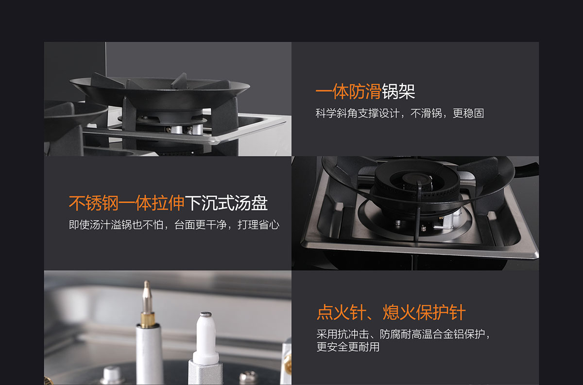 - 雙重冷凝網(wǎng)板,高效油煙分離,打理方便自如