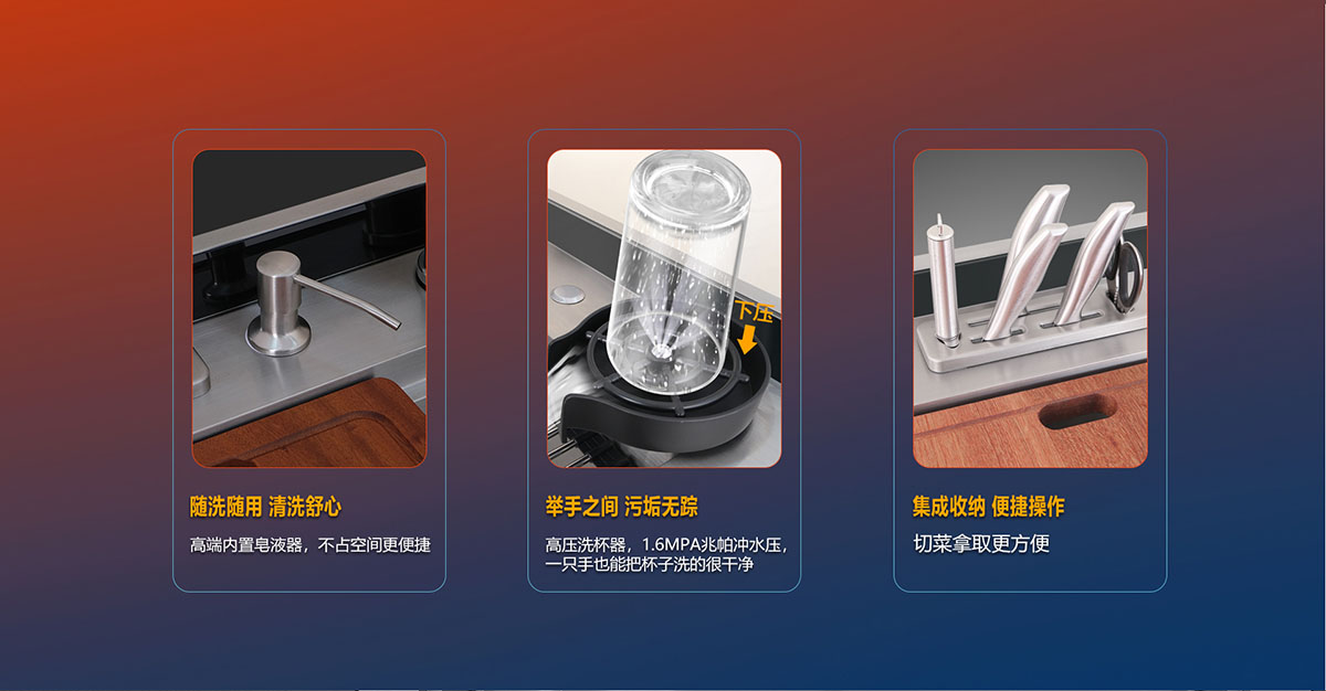 • 高端內置皂液器,隨洗隨用 ,不占空間更便捷