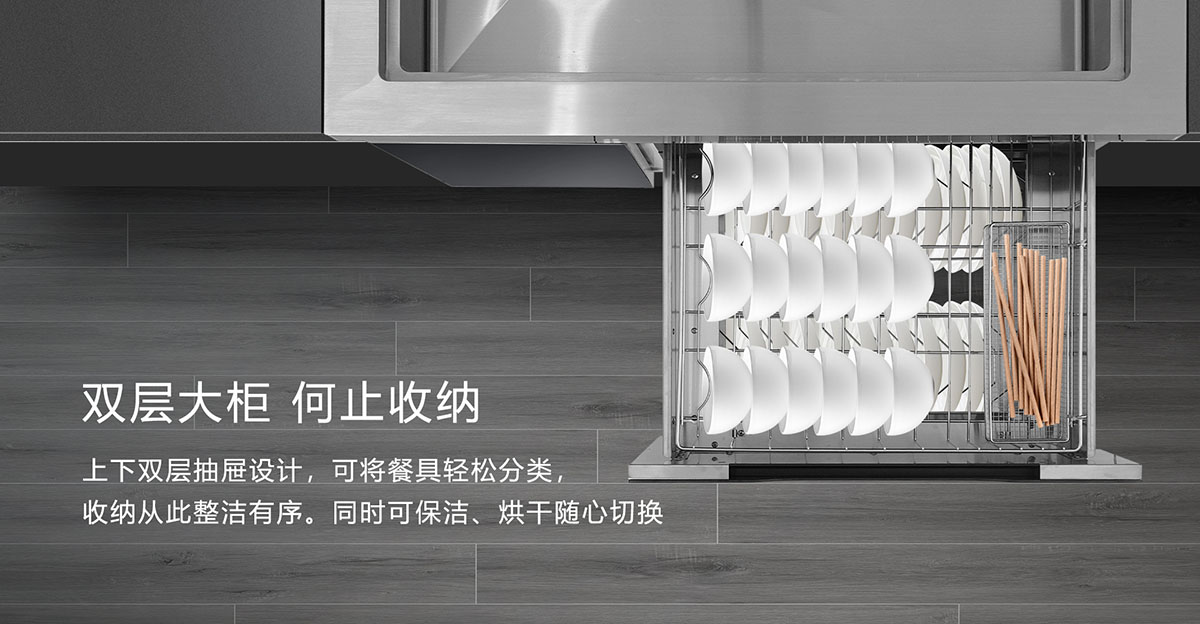 • 上下大雙層抽屜設計,餐具輕松分類,收納整潔有序