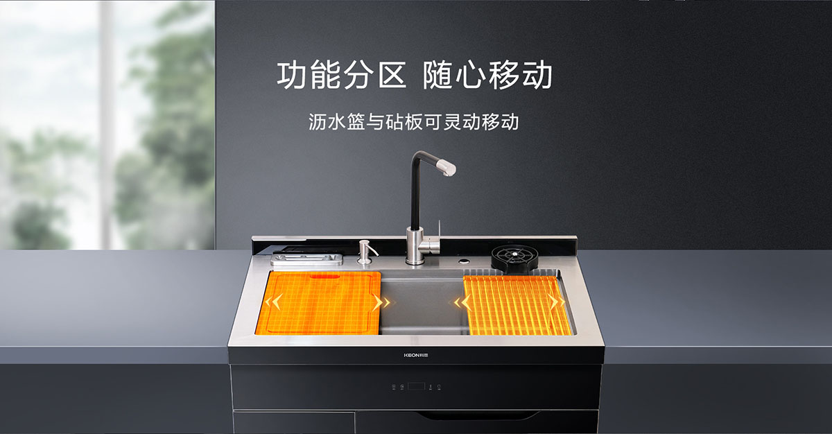 • 瀝水籃與砧板可靈動移動,功能分區,隨心移動
