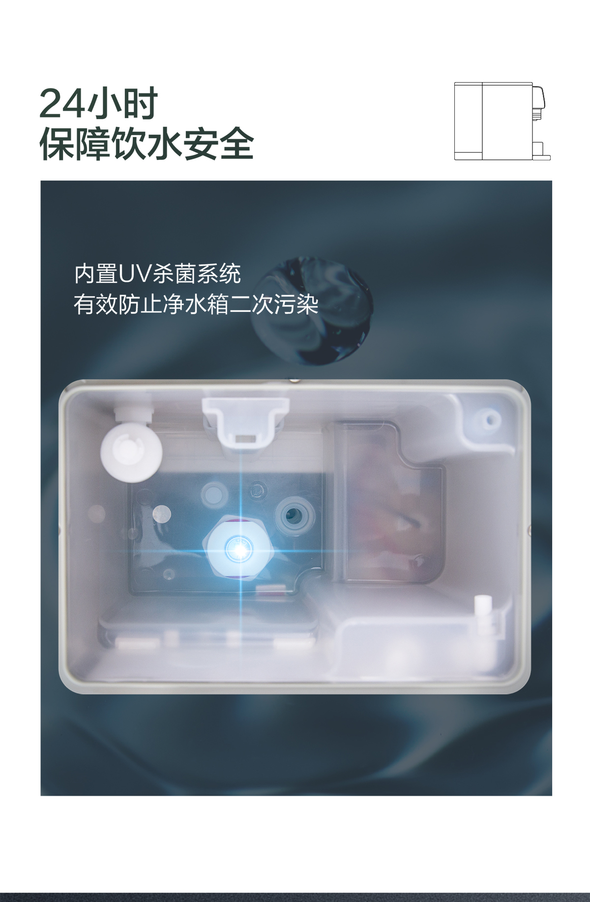 • 可拆卸凈水箱+UV紫外線抑菌殺菌功能
