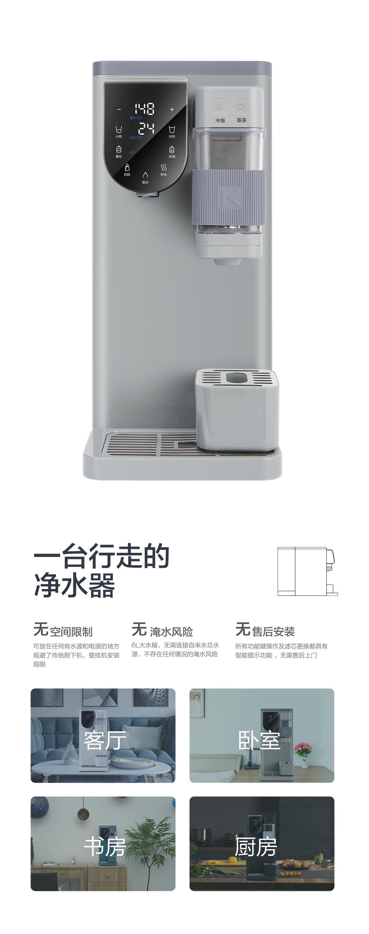 • 智能濾芯換芯提醒,避免飲水二次污染
