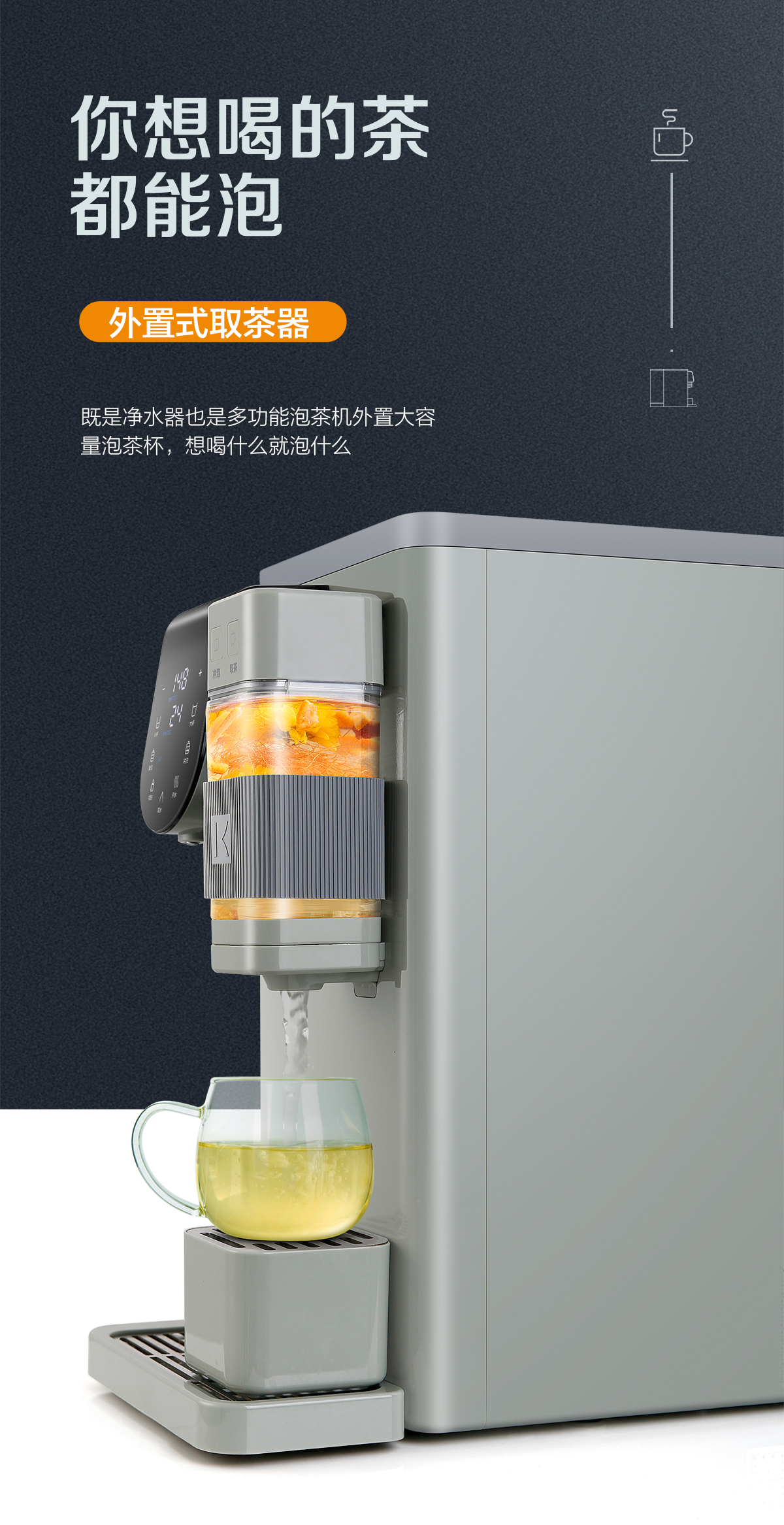 • 外置式沖泡取茶器,泡茶(綠茶、紅茶、花茶、養生茶、人參等)更加便捷方便