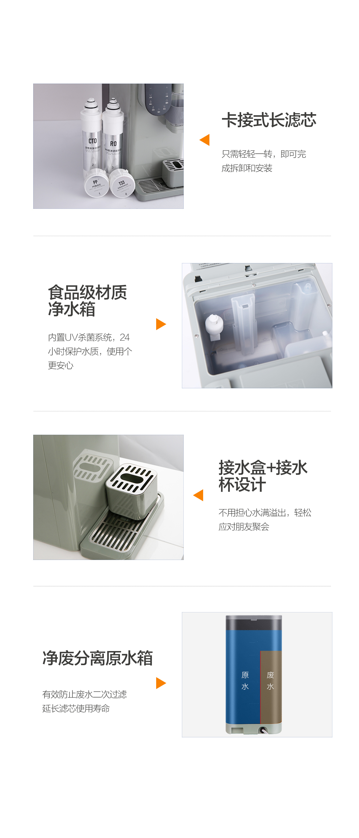 • 凈廢分離原水箱,有效減少濾芯使用損耗
