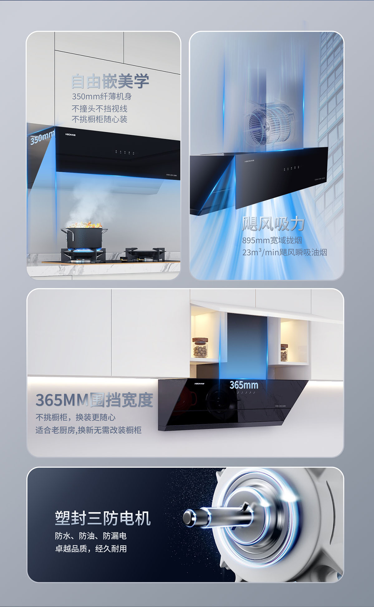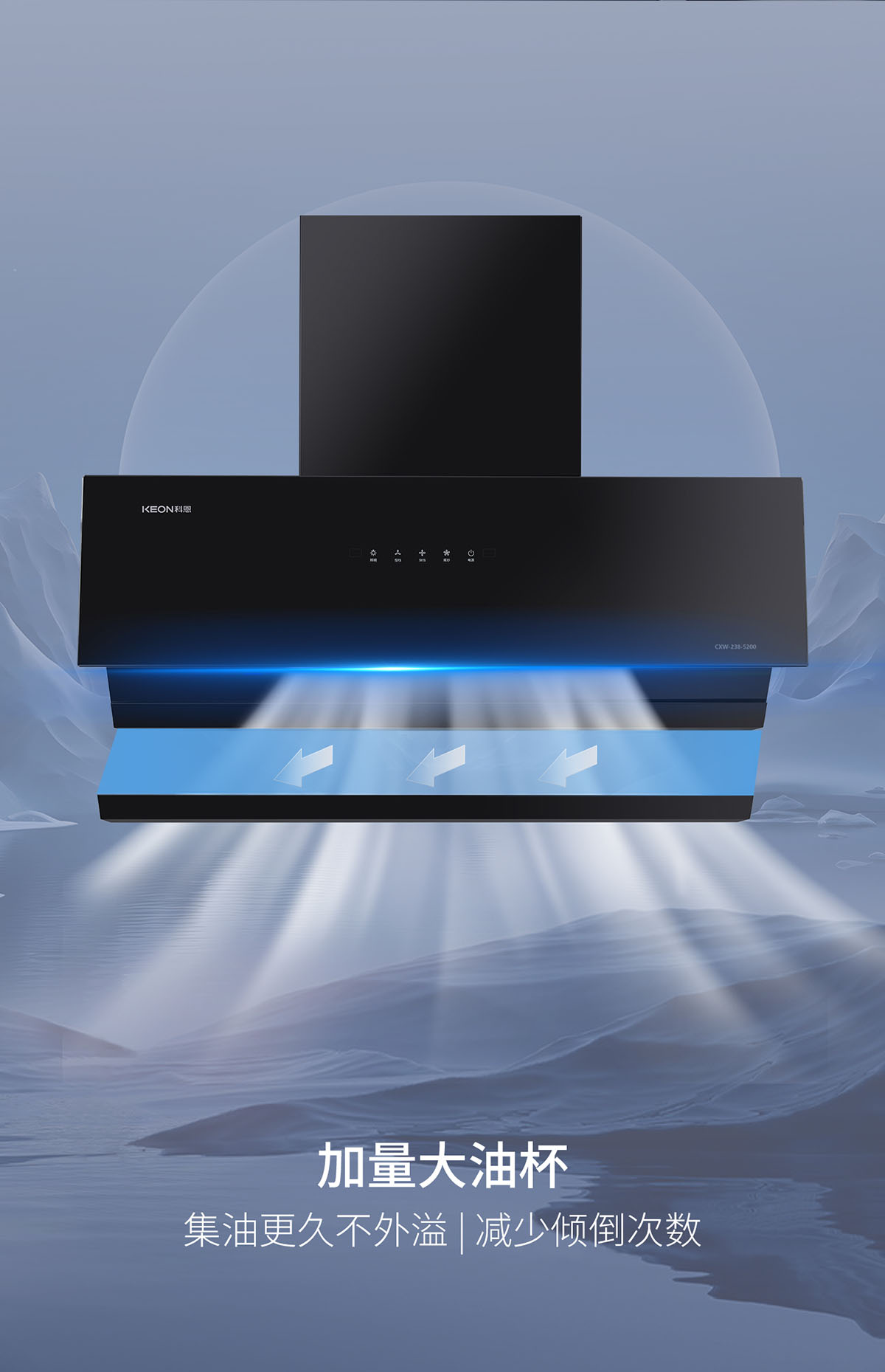 - 23m³/min颶風(fēng)吸力,瞬吸油煙,打造無煙廚房