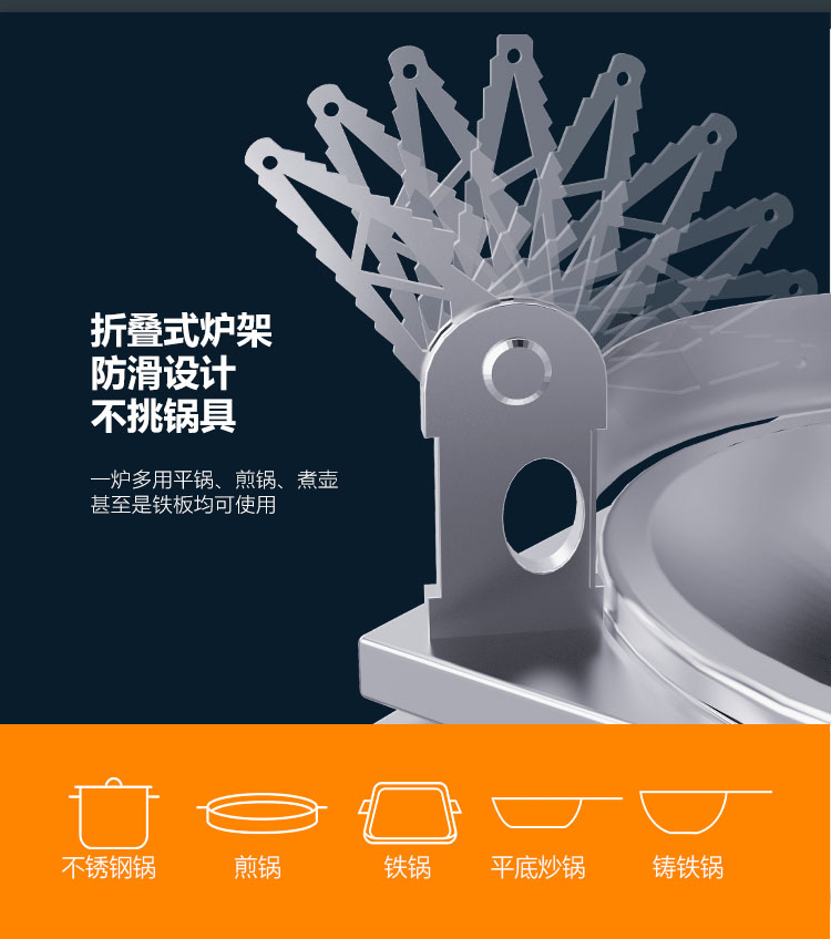 - 飛檐式可調節防滑鍋架,適配各種鍋具