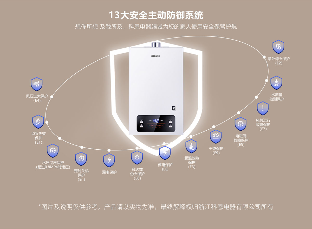 - 極速智能恒溫技術,精確的燃氣比例閥恒溫調節系統。