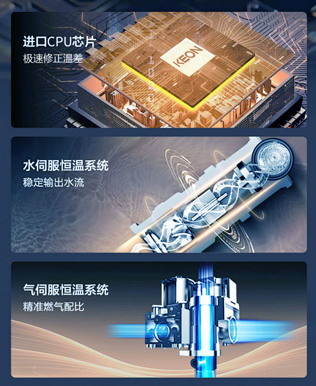 • 極速智能恒溫技術,精確的燃氣比例閥恒溫調節系統。