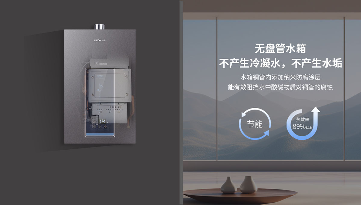 • 無氧銅水箱環保、節能、高效,熱效率高達89%以上