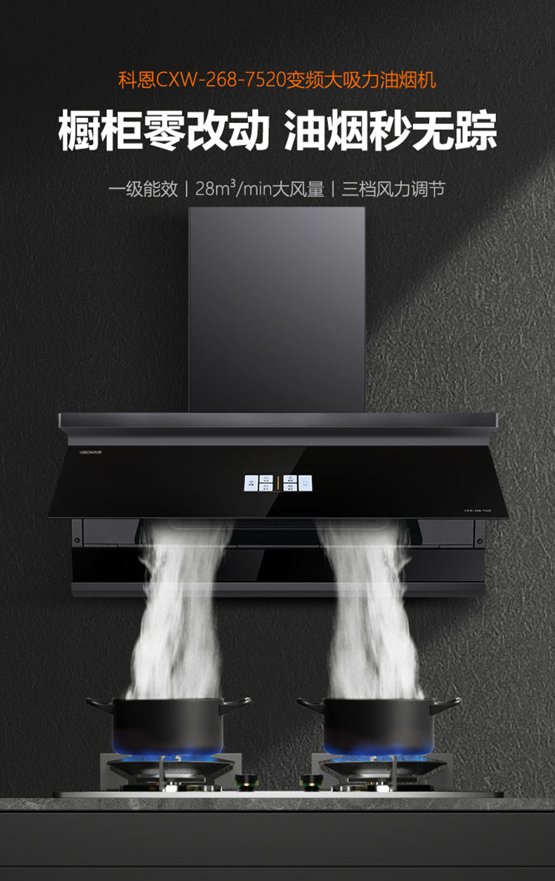 - 28m³/min颶風(fēng)吸力,爆炒瞬間吸凈油煙
