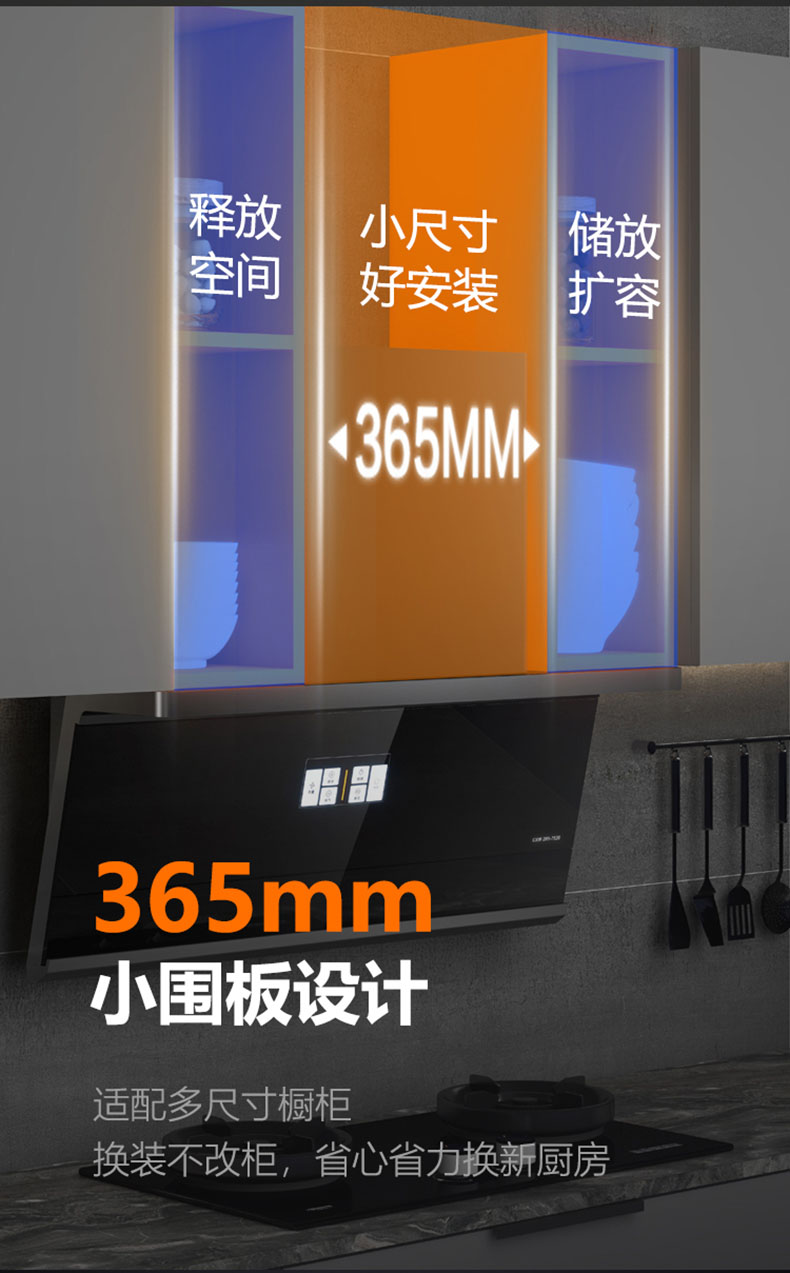 - 365mm小圍板設(shè)計(jì),適配多尺寸櫥柜,換裝不改柜