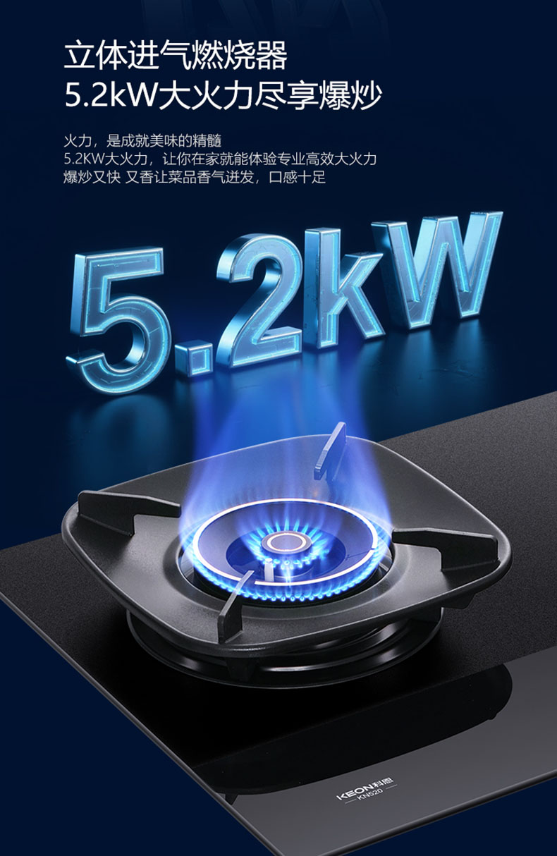 - 三噴引射,立體進(jìn)氣,5.2kW大火力盡享爆炒