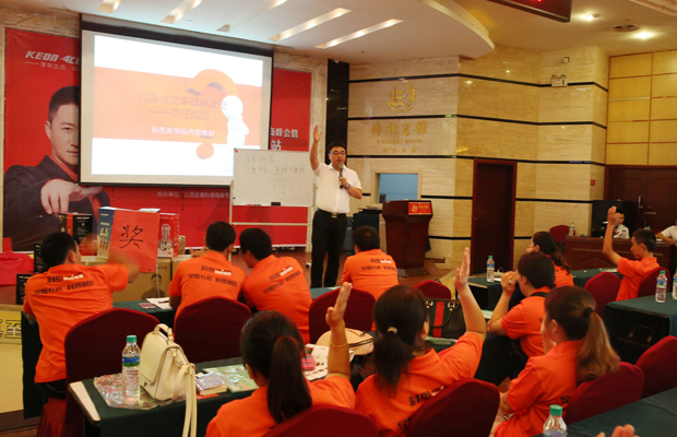 授課實戰環節,科恩電器商學院王校長現場傳授營銷秘訣,重點圍繞提升成交率和電話營銷等進行深入淺出的講解,并與經銷商進行良好的互動,講解課程重點,進一步提升終端解決實際市場問題的能力。通過本次育商大會,進一步加強了廠商之間的溝通、交流和互動,同時更加堅定了廠商攜手同行、勇往直前的信心和力量。